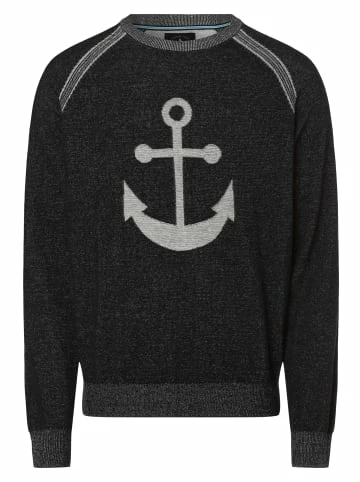 Ahoi: Mit dem Anker-Jacquard auf der Vorderseite setzt der Pullover von Andrew James Sailing maritime Akzente. – normale Passform – Rundhalsausschnitt – Raglanärmel – Rippbündchen – Anker-Jacquard vorne – Doubleface-Effekt – Feinstrick aus Baumwolle