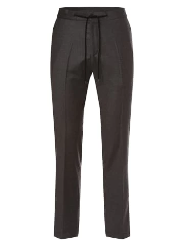 Mit dem Tunnelzug am Bund präsentiert sich das Modell Carter als moderne Interpretation der klassischen Businesshose. Die Hose ist Teil eines Baukasten-Anzugs, kann aber auch allein getragen werden. – Regular Fit – Bund mit Tunnelzug – Zip-Fly – seitliche Eingrifftaschen – knöpfbare Paspeltaschen hinten – Bügelfalten – leicht elastische Schurwoll-Qualität