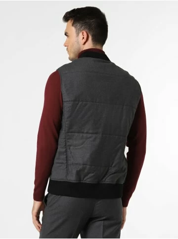 Während Ripp-Akzente der Andrew James New York Weste einen sportiven Touch verleihen, setzt die hochwertige Schurwoll-Qualität smarte Style-Impulse. Die Weste ist Teil eines Baukasten-Anzugs, kann aber auch allein getragen werden. – Regular Fit – Blousonkragen – Reißverschluss – 2 knöpfbare Pattentaschen – 2 Innentaschen – Rippbund – Schurwoll-Mix – Weberei: Marzotto