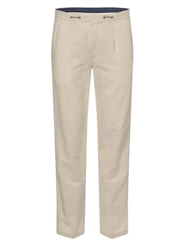 Der Kordel-Tunnelzug unterstreicht den natürlichen Charme der Empire-Summer Hose mit Leinen-Anteil von Andrew James New York. – Regular Fit – Haken-, Knopf- und Reißverschluss – Tunnelzug – Bundfalten – 2 seitliche Eingrifftaschen – 2 knöpfbare Paspeltaschen hinten – Baumwolle mit Leinen-Anteil