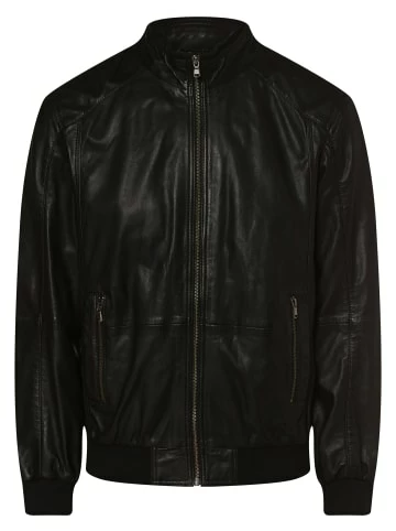 Die Lederjacke von Andrew James macht mit dem coolen Blouson-Style gekonnt auf sich aufmerksam. – gerippter Saum – Regular Fit – Stehkragen mit Ripp-Einsatz – Reißverschluss – 2 Zipper-Taschen außen, 3 Innentaschen – Rippbündchen an den Abschlüssen – Glattleder