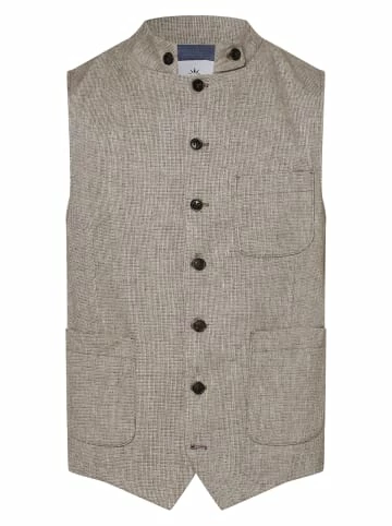 Die strukturierte Andrew James New York Weste Roy verleiht jedem Outfit im Nu einen smarten Feinschliff. – Regular Fit – Stehkragen – Knopfleiste – 3 aufgesetzte Taschen – rückwärtiger Taillenriegel – mit Leinen- und Woll-Anteil