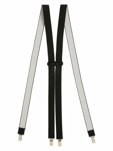 Dezent gehaltene Hosenträger von Andrew James aus einem elastischen Material, die mithilfe der Metall-Clips problemlos an der Hose befestigt werden können. – Länge: ca. 109 cm – Metall-Clips – elastische Träger – verstellbar mittels Riegel – Innenseite leicht angeraut – Breite: ca. 2,5 cm
